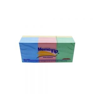 BLOCK DE NOTAS ADHESIVAS JANEL MEMOTIP 12 PIEZAS DE 100 HOJAS C/U PASTEL 3.81 X 5.08 CENTIMETROS