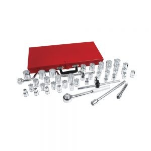 En pulgadas y métricos 12 puntas con accesorios cuadro 1/2” en caja metálica